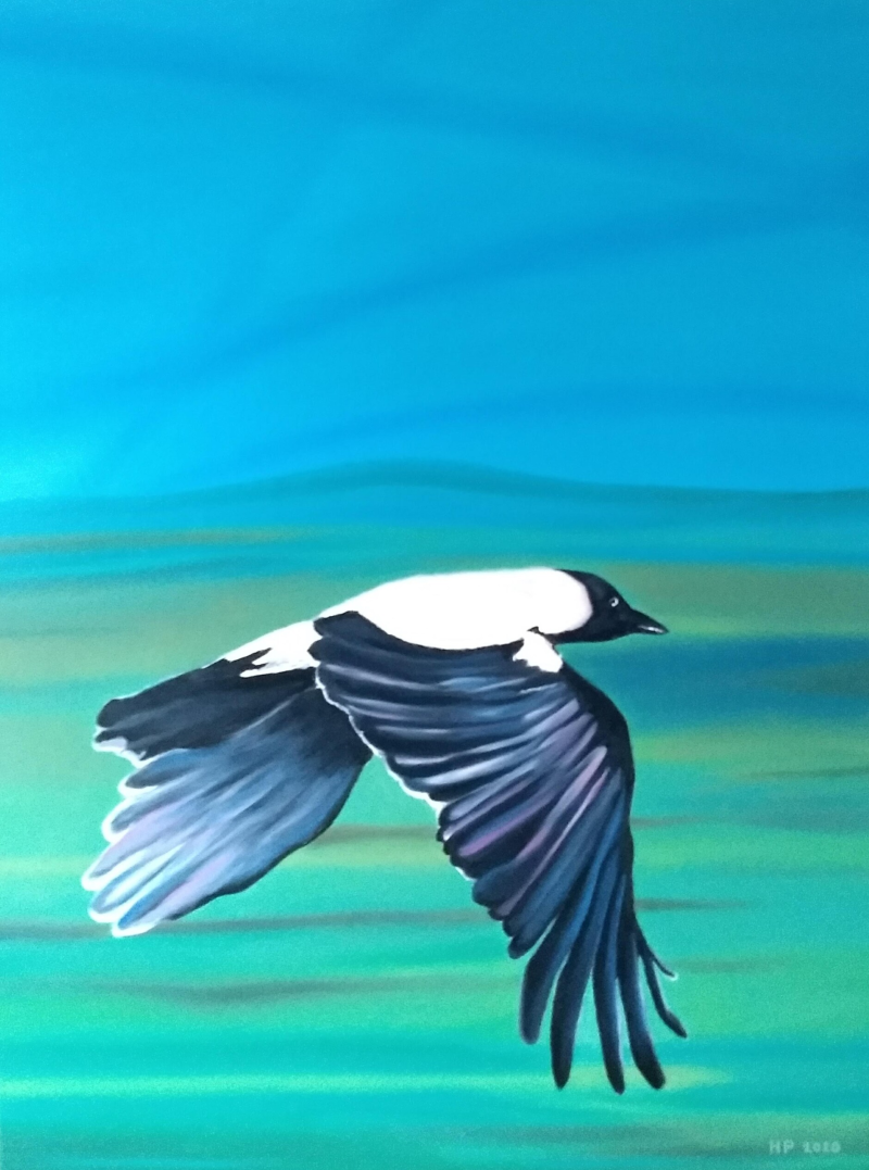 Vogelvlucht, 60cm x 90cm, olieverf, 2020